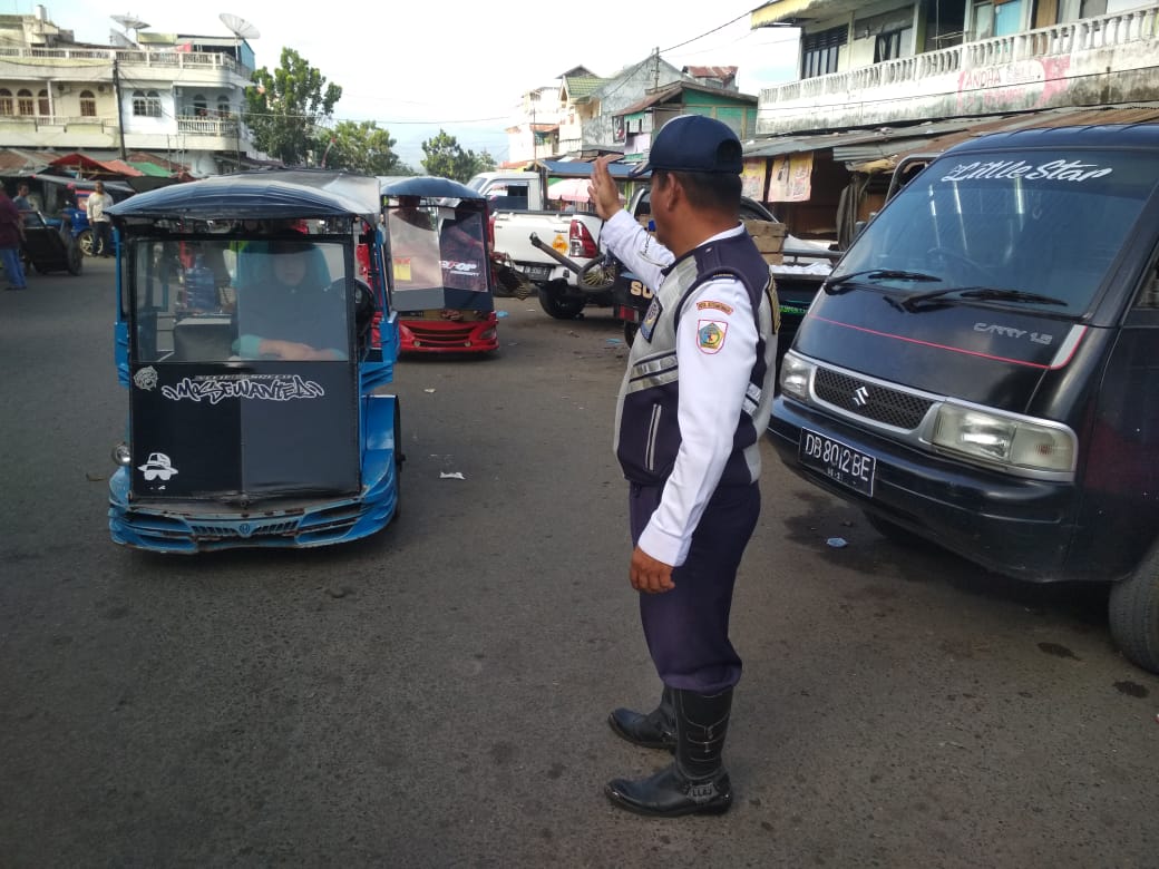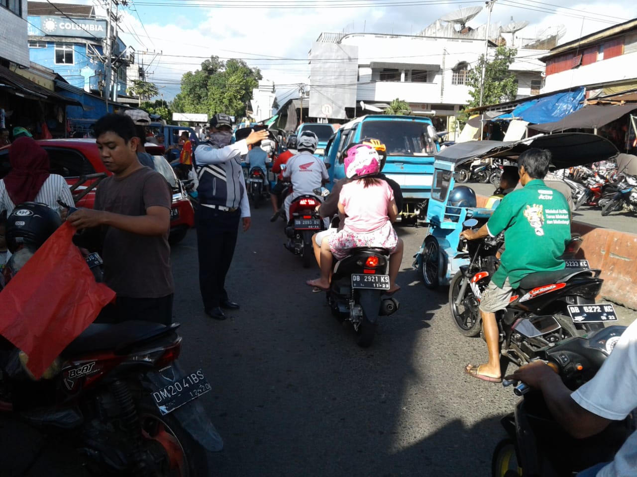 Kepala Seksi Operational bersama jajarannya melaksanakan pengaturan arus lalulintas di pasar serasi